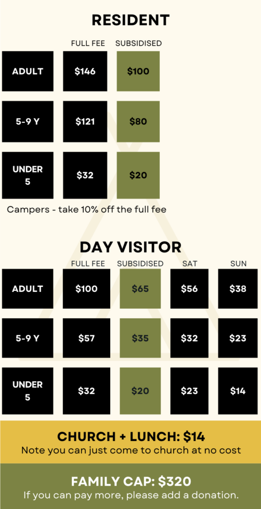We know that camp gets pretty expensive. Please talk to someone on the Camp Committee or the Staff Team if you need further subsidisation.